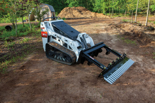 The GM45-1 is a multi-use manual skid steer attachment designed to get into the tight places your mini skid steer can go. It is engineered to clear terrain, de-compact and level soil in preparation for seedbed planting. Scarifiers work in combination with the finish rake to prepare the soil up to 5” deep. Its design and durability make it one of the most versatile attachments you will ever own. It is ideal for clearing grass and weeds, as well as doing the finesse to work of ground preparation around concrete edges without damaging it and leaving a smooth finished seedbed. Key User Benefits: Speed – Makes short work of clearing terrain, de-compacting, and leveling ground in preparation for seeding or sod with far fewer labor hours than the traditional Harley Rake. Ease of Use – The GM Series is operator friendly and clear site lines make edge working a breeze. The operator has complete control of the unit to do the finest detail work. With all of the functionality built into this revolutionary attachment the tedious and back breaking task of hand work can be eliminated. Toughness – Forged steel, cast iron, AR steel, welded construction—everything from the frame, to the foam filled tires is engineered to take a pounding and continue to perform. With no complicated and expensive hydraulically powered rotating parts, the GM Series is the toughest tool on the jobsite. Maintenance – The ingenious design of the GM Series makes maintenance fast and simple. The wear components are either bolted or pinned in place for fast and easy replacement. Plus many of the components are common throughout the unit requiring minimal inventory. Results – Perfectly graded ground with soil de-compacted up to 5” deep means your seed has the best environment for germination and developing a healthy, deep root system. And you did it in less than half the time of your competitors. Save Time, Space and Money – When one tool can clear vegetation, de-compact the soil, and leave a smooth and level seedbed, you save space on the trailer, save time by not switching implements, and save money by owning and maintaining just the one tool that can do it all. |