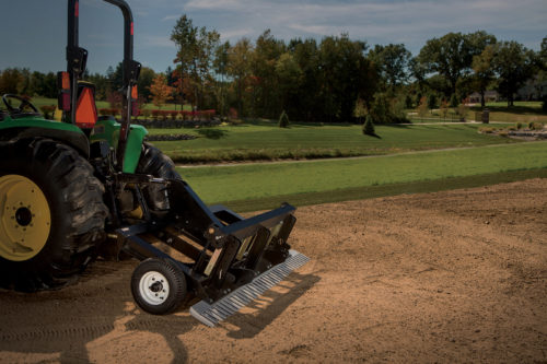 The GT SERIES is a multi-use, manual, compact tractor attachment engineered to clear terrain, de-compact the toughest hardpan, and level soil in preparation for seedbed planting. Scarifiers work in combination with the finish and leveling rakes to prepare the soil up to 6” deep. Its design and durability make it one of the most versatile attachments you will ever own. It is ideal for clearing vegetation, brush and small trees, as well as doing the finesse work of ground preparation around concrete edges and walkways without damage all while leaving a smooth finished seedbed ready for planting. Key User Benefits: Speed – Makes short work of clearing terrain, de-compacting, and leveling ground in preparation for seeding or sod with far fewer labor hours than Harley rakes or hand work. Ease of Use – The GT SERIES is designed to operate in both forward and reverse with four simple components working together to make it easy to clear land and leave a smooth finished seedbed. The scarifiers, finish rake, leveling rake and gauge tires eliminate the guess work of following the contour of the land, unless you want to change it, then the tool can be locked down to shape it the way you want it. Clear site lines make edge working a breeze. The operator has complete control of the unit to do the finest detail work. With all of the functionality built into this revolutionary attachment the tedious and back breaking task of hand work can be eliminated. Toughness – Forged steel, cast iron, AR steel, welded construction—everything from the frame, to the foam filled tires is engineered to take a pounding and continue to perform. With no complicated and expensive hydraulically powered rotating parts, the GT SERIES is the toughest tool on the jobsite. Maintenance – The ingenious design of the GT SERIES makes maintenance fast and simple. The wear components are either bolted or pinned in place for fast and easy replacement. Plus many of the components are common throughout the unit requiring minimal inventory. Results – Perfectly graded ground with soil de-compacted up to 6” deep means your seed has the best environment for germination and developing a healthy, deep root system. And you did it in less than half the time of your competitors. Save Time, Space and Money – When one tool can clear brush, de-compact the soil, and leave a smooth and level seedbed, you save space on the trailer, save time by not switching implements, and save money by owning and maintaining just the one tool that can do it all. |